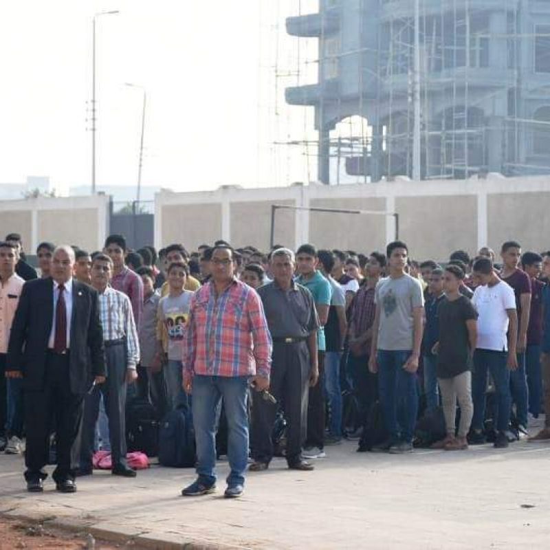محافظ الشرقية بين أبنائه الطلاب في طابور الصباح ويؤدي تحية العلم في أول أيام العام الدراسي الجديد